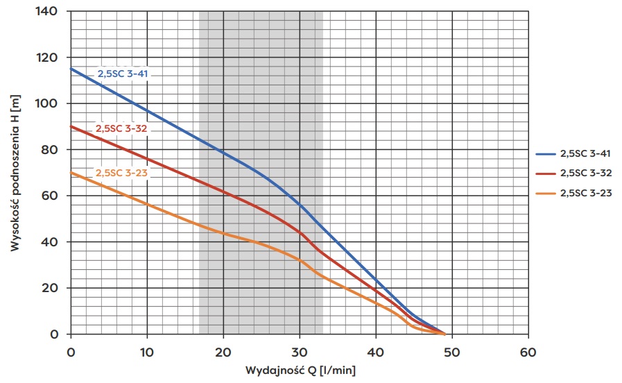 Montaż pompy 2,5" SC 3/41 jest szybki i prosty. Dzięki niewielkim wymiarom i wadze (14 kg), pompę można łatwo zawiesić w studni przy użyciu stalowej liny z zaciskami. Dodatkowo, pompa jest wyposażona w kabel o długości 1,5 metra, co ułatwia jej podłączenie do źródła zasilania. Po zamontowaniu, pompa nie wymaga skomplikowanej obsługi i może pracować w trybie automatycznym (w połączeniu ze zbiornikiem hydroforowym).Zabezpieczenia i akcesoria