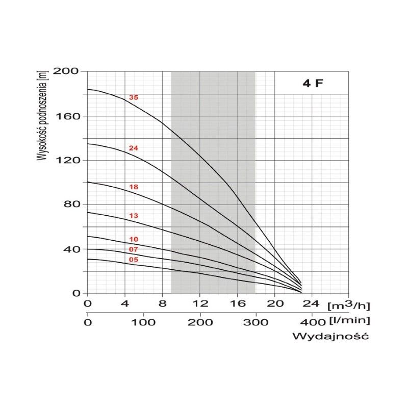 Pompa głębinowa Belardi 4F7 to idealne rozwiązanie do pompowania wody ze studni głębinowych. Z wydajnością do 380 l/min i maksymalnej wysokości podnoszenia 40 m, doskonale sprawdzi się w rolnictwie, sadownictwie i ogrodnictwie. Pamiętaj, że woda tłoczona za pomocą tego modelu musi być czysta, bez zawartości elementów stałych i długowłóknistych, a jej temperatura nie powinna przekraczać 30°C.