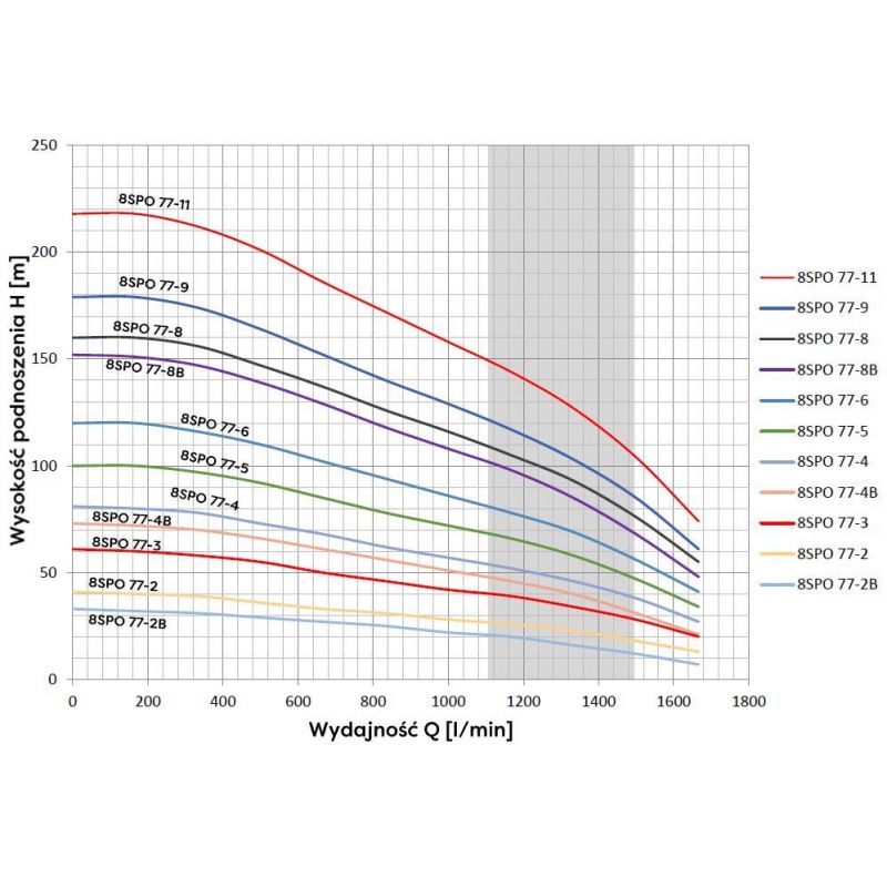 Dzięki diagonalnej budowie hydraulicznej, pompa 8 SPO 77-4B oferuje imponującą wydajność. Może przepompować aż 1666,7 litrów wody na minutę i podnieść ją na wysokość 73 metrów. Takie parametry czynią ją idealnym rozwiązaniem do zaopatrywania w wodę domów jednorodzinnych, wielorodzinnych, gospodarstw rolnych, a także zakładów przemysłowych i usługowych. Wysoka wydajność pozwala na szybkie i efektywne pompowanie wody, co przekłada się na oszczędność czasu i energii.