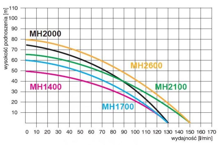 Sercem pompy MH 1700 Premium jest mocny silnik o mocy 1,65 kW, który zapewnia wysoką wydajność urządzenia. Pompa osiąga maksymalny przepływ do 130 litrów na minutę, a maksymalna wysokość podnoszenia wynosi 60 metrów. Dzięki temu, możesz mieć pewność, że pompa poradzi sobie nawet z trudnymi warunkami pracy. Niezależnie od tego, czy potrzebujesz zasilić w wodę duży dom, nawodnić rozległy teren, czy obsłużyć procesy przemysłowe, pompa MH 1700 Premium spełni Twoje oczekiwania.