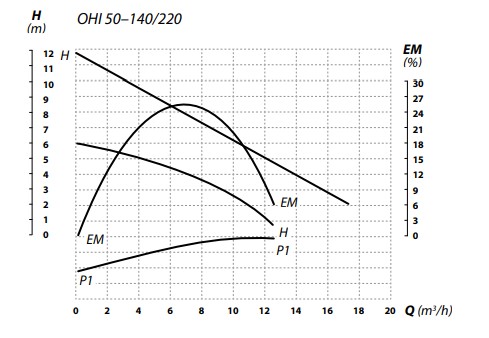 Pompa OHI 50-140/220 charakteryzuje się maksymalną wydajnością na poziomie 210 l/min, co pozwala na szybkie i efektywne rozprowadzanie ciepła w systemie. Ciśnienie maksymalne wynosi 1.2 bar, a wysokość podnoszenia sięga 12 metrów, co zapewnia sprawne działanie nawet w bardziej rozbudowanych instalacjach. Mocny silnik o mocy 550 W (0.55 kW) zapewnia wystarczającą siłę do efektywnej pracy, przy zachowaniu rozsądnego zużycia energii. Zasilana jest napięciem 230V, co czyni ją kompatybilną z większością instalacji elektrycznych.