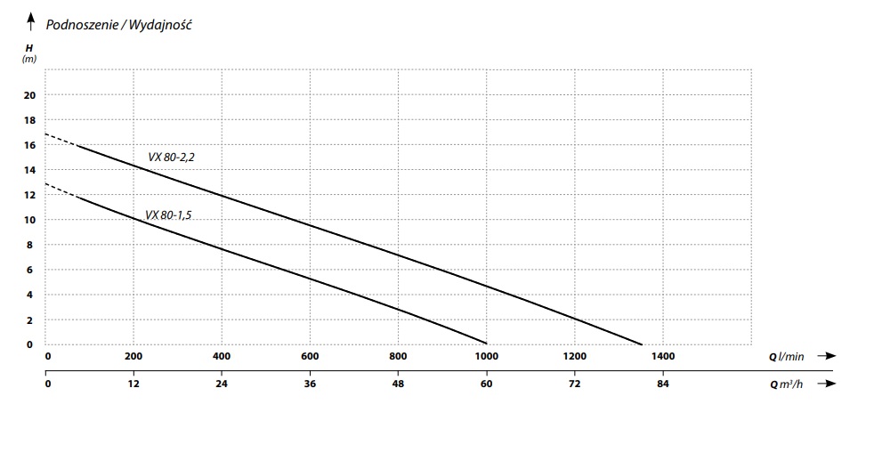 Dzięki mocy 1,5 kW i zasilaniu 400V, pompa VX-80-1,5 oferuje imponującą wydajność. Przepływ na poziomie 1000 l/min i zdolność podnoszenia wody na wysokość 13 metrów sprawiają, że praca z dużą ilością wody i ścieków staje się szybka i efektywna. Jednokanałowy, żeliwny wirnik otwarty efektywnie rozdrabnia zanieczyszczenia, zapobiegając zatykaniu się pompy i zapewniając ciągłość pracy nawet przy dużym obciążeniu.