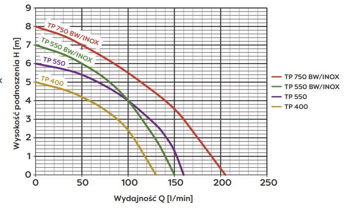 Pompa TP 550 BW INOX jest przeznaczona do użytku domowego i okazjonalnego. Nie jest przystosowana do pracy ciągłej, na przykład podczas pompowania wody w oczku wodnym. Jej głównym zadaniem jest szybkie i efektywne usuwanie wody z zalanych pomieszczeń. Pamiętaj o prawidłowym użytkowaniu i zastosowaniu pompy zgodnie z jej przeznaczeniem, aby zapewnić jej długą żywotność.Gwarancja i Serwis Pogwarancyjny
