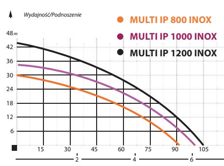 Pompa Multi IP 800 INOX charakteryzuje się wydajnością maksymalną na poziomie 92 l/min oraz wysokością podnoszenia do 30m. Średnica króćca tłocznego wynosi DN25 (1"). Maksymalny prąd uzwojenia to 3,5A. Pompa jest przystosowana do pompowania wody czystej i lekko zanieczyszczonej, nie zawierającej elementów szlifujących o maksymalnej średnicy 0,5mm. Wymiary pompy to: wysokość 36cm, szerokość 17cm, a waga 8,25kg.Bezpieczeństwo i Ochrona Pompy