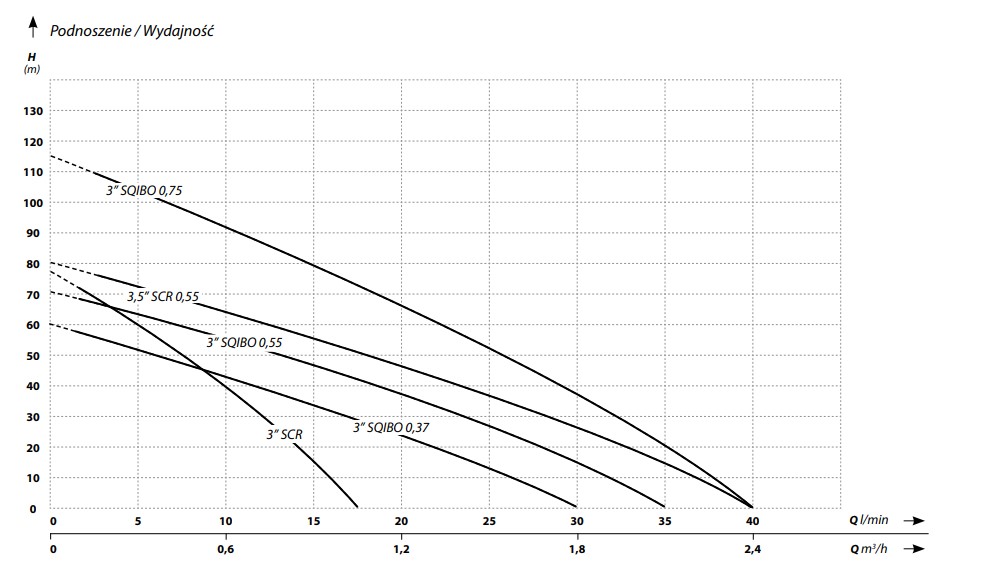 Sercem zestawu jest wysokiej jakości pompa głębinowa 3SQIBO 0,75 marki IBO. Charakteryzuje się ona mocnym silnikiem o mocy 0,75kW, zasilanym napięciem 230V. Dzięki optymalnej konstrukcji, pompa osiąga wydajność maksymalną 40 l/min i podnosi wodę na wysokość aż 115 metrów. Pozwala to na uzyskanie maksymalnego ciśnienia 11 bar, co zapewnia komfort użytkowania w instalacjach domowych i ogrodowych. Średnica pompy to 75 mm. Posiada także kabel zasilający o długości 15 metrów.